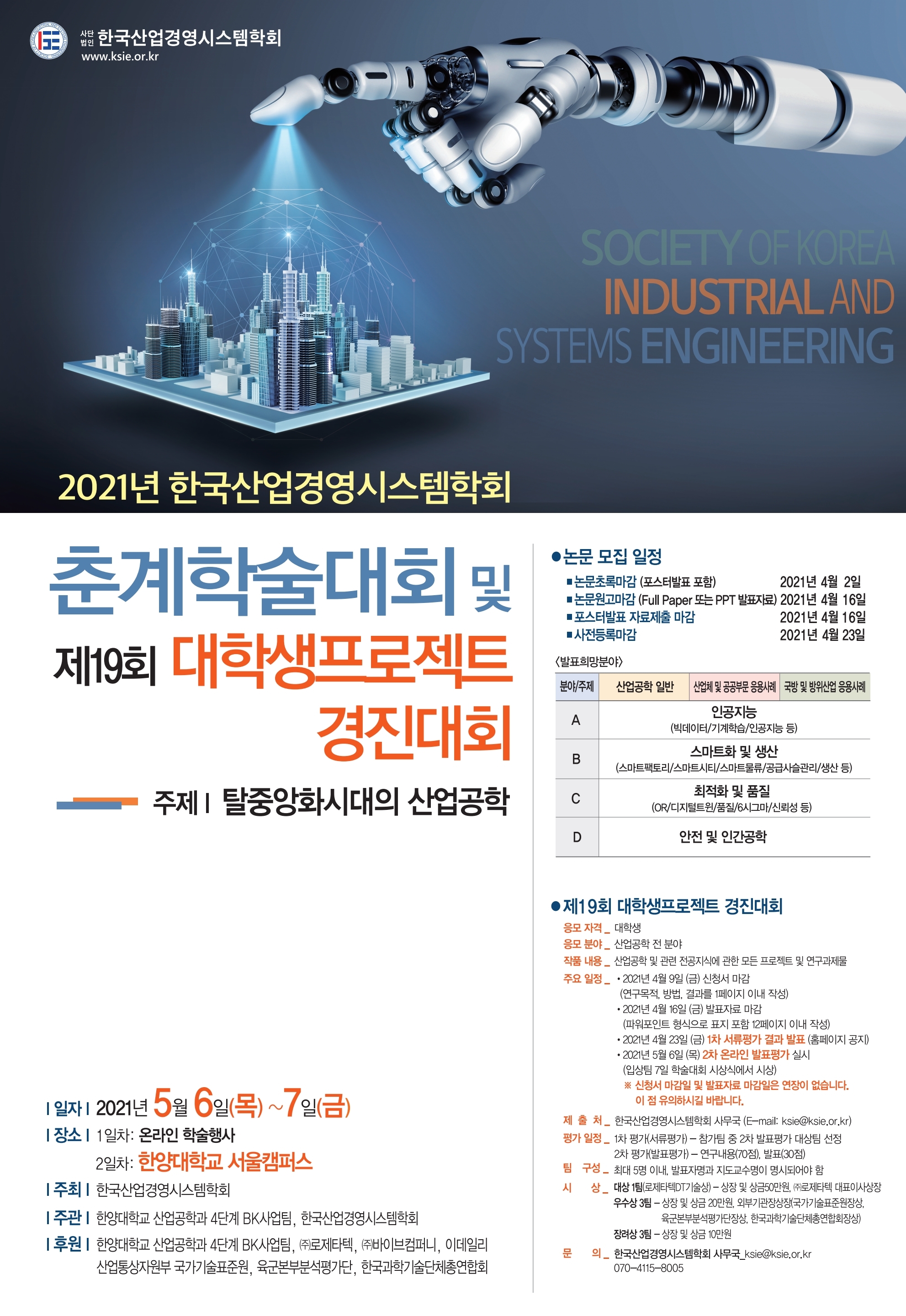 - 한국산업경영시스템학회 사무국, 담당자 김종천ksie@ksie.or.kr, 070-4115-8005
