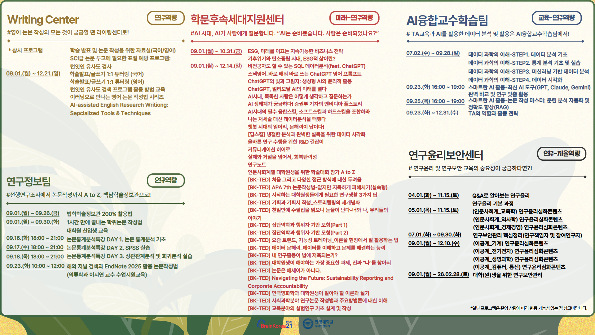 | [월간 비교과] BK21 대학원혁신지원사업 2025년 9월 비교과 프로그램 안내 | ||
