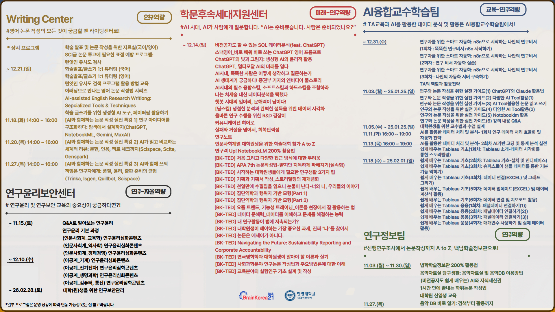 | [월간 비교과] BK21 대학원혁신지원사업 2025년 11월 비교과 프로그램 안내 | ||